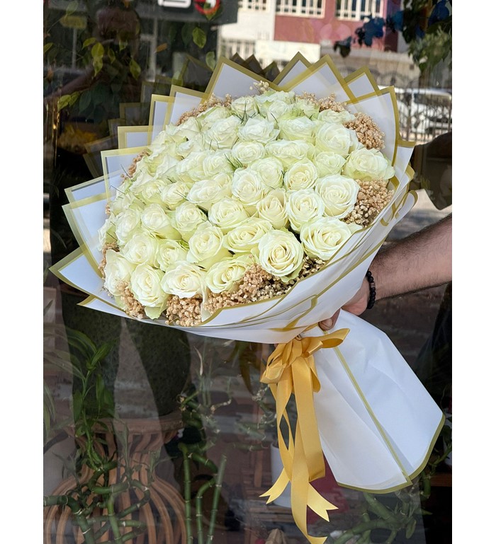41Adet Beyaz Gül ile yaotığımız gül buketinİ Sizlerle sunuyoruz