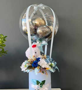 BALONLU ERKEK BEBEK ARANJMANINI SİZLERLE BULUŞTURUYORUZ YAPAY ÇİÇEKLERİMİZLE ARANJMAN YAPTIK VE SİZLERLE BULUŞTURDUK